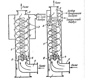 Во избежание значительного уноса брызг скорость газа в орошаемом газоходе следует принимать не более 3 м/с. В большинстве случаев после орошаемых газоходов необходимо устанавливать каплеуловители и снабжать газопроводы дренажными устройствами для отвода жидкости.