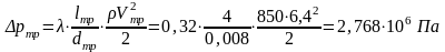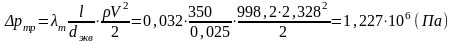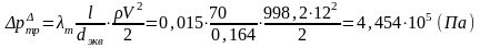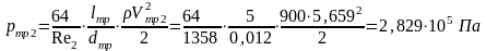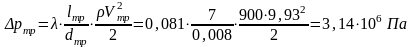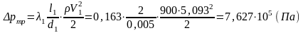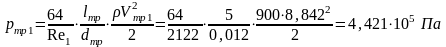Определим потери давления на трение в трубах круглого