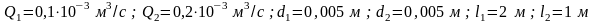 в магистралях гидропередачи (рис. 1), если расходы жидкости: