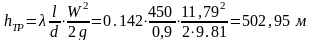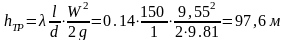 Абсолютная шероховатость ∆=1мм.Тогда ∆ больше δ, имеем область гидравлически шероховатых труб.