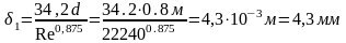 Абсолютная шероховатость ∆=1мм.Тогда ∆≤δ имеем область гидравлически гладких труб.