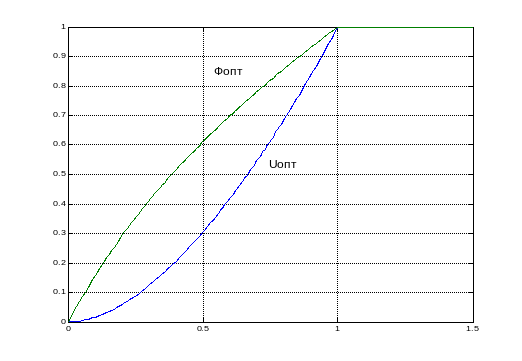 Рисунок 6 Зависимости оптимального изменения потока и напряжения