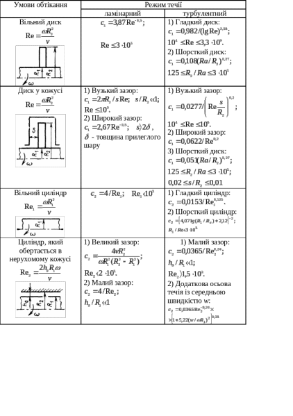 - густина рідини; c1 та с2 – коефіцієнти дискового тертя, формули для обчислення яких наведені в таблиці 4.