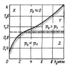 Через відсутність точніших методів оцінки тиску в зазорі надалі користуватимемося діаграмою (рис. 8). В області X (область граничного тертя)