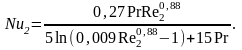 та t2 - середня температура поверхні, яка віддає тепло, та середня температура навколишнього середовища, °С. Коефіцієнт втрат на тертя циліндрової поверхні для Re2 > 1500 дорівнює