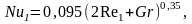 r - радіус циліндра, що обертається; h0 - радіальний зазор між циліндрами (рухомим та нерухомим). Критерій Грасгофа характеризує конвективний теплообмін за рахунок архімедових підйомних сил, які обумовлені відмінністю густин в окремих точках неізотермічного потоку через теплове розширення. Критерій Прандтля є відношенням турбулентного перенесення імпульсів за рахунок внутрішнього тертя до турбулентного перенесення тепла за рахунок теплопровідності. Для повітря за нормальних умов Рr = 0,74; для води при t = 0ºС Рr = 13,0. Із зростанням температури води до 250 °С (на лінії насичення) число Прандтля зменшується до Рr = 0,84; при подальшому зростанні температури число Прандтля знову збільшується [13].
