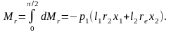 Момент Мr відносно осі Оу радіальних сил тиску, що діють на циліндрову поверхню з радіусом r2, і завдовжки l1, одержимо, якщо підсумуємо моменти проекцій елементарних сил тиску (рис. 12) на площину