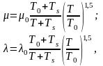 Динамічний коефіцієнт в'язкості та коефіцієнт теплопровідності газів можна оцінити наближеними формулами Сезерленда, якщо нехтувати їх незначним збільшенням із зростанням тиску (при тиску до 20 МПа):