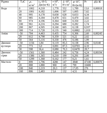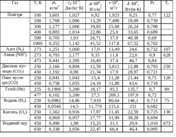 - в'язкість та теплопровідність при атмосферному тиску та температурі °С;