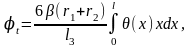 - рис. 12), то Іу=bl3/12, dS=bdx, уc=0,5(r1+r2) та при постійному по перерізу модулю пружності та коефіцієнті лінійного розширення температурна складова кута повороту перетину