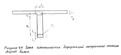 Величина площади пластических деформаций Fsi определяется геометрическими характеристиками балки (F, 1у, I/-) свойствами материала (j-i'sSs), режимом сварки (qni) и продолжением центра тяжести этой зоны Ус1, и Zc2 относительно главных осей у и z (рисунок 4.4)