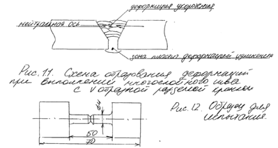 Рассмотрим образование деформаций при последовательном выполнении двухстороннего шва.