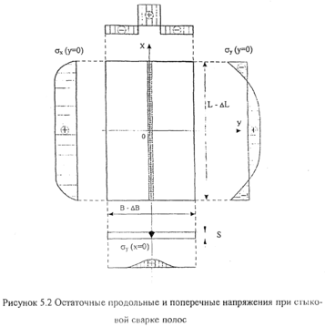 Вследствие неравномерного нагрева при стыковой сварке полос возникают как продольные так и поперечные сварочные деформации и напряжения. Проследим за образованием поперечных деформаций в полосе, которая имитирует собранные на прихватках две одинаковые полосы без зазора (рисунок 5.1, а). Пусть по оси полосы х наплавляется валик. Будем различать области: