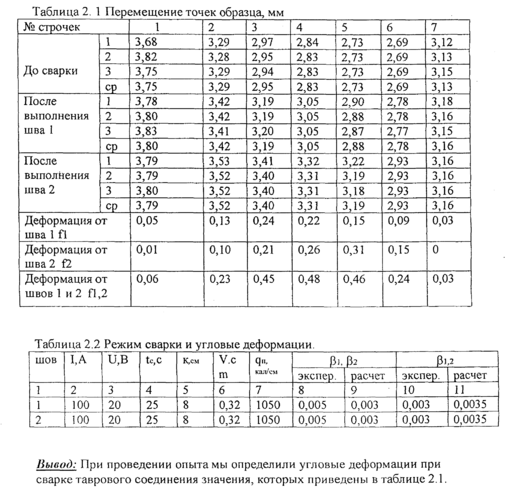 Рассматривая напряженное состояние швов и полки, можно определить угол 9". Результаты расчета и экспериментов показывают, что при сварке тавровых соединений, принятых в этой работе размеров 9и"а2 и 2"=2, поэтому для приближенного определения грибовидности полки достаточно знать углы изгиба ее в результате проплавления при выполнении обоих угловых швов 1,2=i+2=1+2. При экспериментальной проверке расчетных данных следует иметь в виду, что в настоящее время теория сварочных деформаций не учитывает большое число факторов, влияющих на угловые деформации, поэтому приведенные зависимости, как и все другие имеющиеся формулы, следует рассматривать как ориентировочные. Приборы и материалы