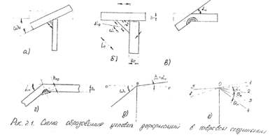 1. Деформация поворота полки на угол ©1 в результате укорочения волокон шва, параллельных гипотенузе (рис.2.1, а).