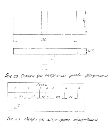 1) Собранное на прихватках тавровое соединение (рисунок 2.2) с углублением и нанесенными рисками на полке.