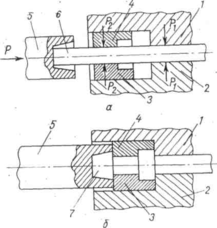 Рис. 11.18. Прошивання отворів на початковій (а) та кінцевій (б) стадіях: