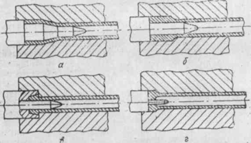 Рис. 11.19. Висаджування потовщень різної форми на трубчастих заготованках.