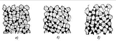 а — плотная; б — среднеплотная; в – открытая