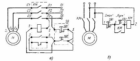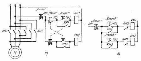 Рис. 2. Схемы включения реверсивного магнитного пускателя