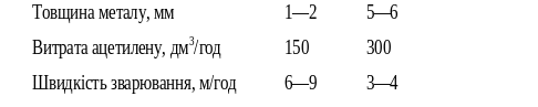 При зварюванні свинцю застосовують також з'єднання внапусток. Полум'я не повинно мати надлишку кисню. Потужність полум'я повинна бути 15—20 дм/год ацетилену на 1 мм товщини листа. Зварювання провадять з мінімальним кутом нахилу мундштука до поверхні виробу. Швидкість зварювання повинна бути найбільшою. Для товщини З—4 мм вона має дорівнювати 6,5—8 м/год. Присадним металом є свинцевий дріт, діаметр якого (2—2,5) S, де S — товщина металу, або стрічка із свинцю. Застосовують спосіб зварювання краплями (ванночками). При цьому способі одночасно нагрівають кромки і дріт до початку плавлення, а потім відводять пальник. Крапля стікає на розплавлений метал кромок, змішуючись з ним і утворюючи метал шва. Кожна наступна крапля повинна наполовину перекривати попередню. При товщині понад 8 мм застостовують багатошарове зварювання. Свинець можна зварювати нижнім, вертикальним і стельовим швами. При зварюванні унапусток верхню кромку трохи відгинають і використовують її як присадний матеріал. Для кращого оплавлення металу при зварюванні свинцю і видалення плівки окису можна застосовувати флюс з рівних частин каніфолі і стеарину. Зварювання свинцю провадиться нормальним коротким, полум'ям. Присадний пруток беруть того самого складу,, що й основний метал.