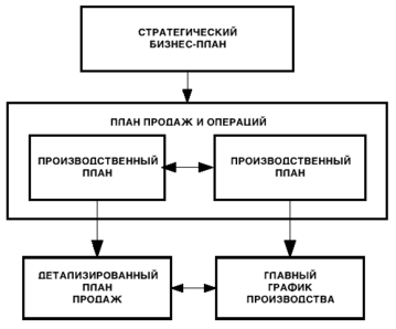 Основываясь на маркетинговом плане и сведениях об имеющихся ресурсах, производственный план устанавливает ограничения или уровни производственной деятельности на тот или иной момент в будущем. Он интегрирует возможности и производительность предприятия с маркетинговым и финансовым планами для достижения общих целей компании в бизнесе. Производственный план устанавливает общие уровни производства и материально-производственных запасов на соответствующий горизонту планирования срок. Первоочередная цель заключается в том, чтобы определить нормы производства, которые позволят выполнить поставленные в стратегическом бизнес-плане задачи. К ним относятся уровни материально-производственных запасов, портфель заказов (невыполненные заказы клиентов), рыночный спрос, обслуживание клиентов, недорогая эксплуатация оборудования, трудовые отношения и так далее. План должен охватывать достаточно продолжительный период, чтобы предусмотреть, какие трудовые ресурсы, оборудование, производственные мощности и материалы потребуются для его выполнения. Обычно этот период составляет от 6 до 18 месяцев и разбивается по месяцам, а иногда по неделям. В процессе планирования на этом уровне не учитываются такие детали, как отдельные изделия, цвета, фасоны или опции. Так как рассматривается длительный промежуток времени, и с уверенностью прогнозировать спрос на такой срок невозможно, подобная детализация была бы неточной и бесполезной, а разработка плана обходилась бы слишком дорого. Для планирования требуется лишь общая единица продукции или несколько групп изделий.