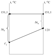 Δtм = 151,1 – t2к = 151,1 – 120 = 31,1 ОС