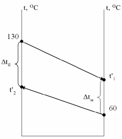 Δtб = t1н – t'2 = 130 – 63,88 = 66,12 ОС