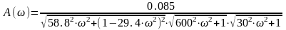 | А(ω) | 0.78 | 0.68 | 0.4 | 0.23 | 0.1 | 0.05 | 0.039 | 0.03 | 0.012 |