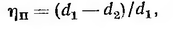 Величину ηп выражают в долях единицы или в процентах. Необходимо отметить, что оценка эффективности работы пылеотделительного устройства по величине ηп - маловыразительна,. так как с точки зрения санитарно-гигиенических условий имеет значение не количество задержанной пыли ηп, а количество пропущенной, т.е.1 - ηп. Поэтому, если одна установка имеет ηп =: 0,96 (задерживает 96% пыли), а другая ηп =0,98 (задерживает 98% пыли), то действительная эффективность работы второй установки больше первой не на 2%, а в (100-96) / (100-98) - 2 раза, так как вторая пропускает пыли вдвое меньше, чем первая.