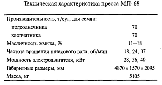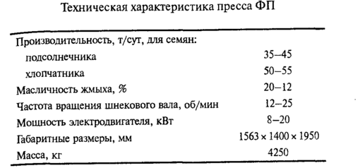 Прессы для неглубокого съема масла применяют в технологической схеме форпрессование - экстракция и в схеме двукратного прессования для предварительного съема масла.