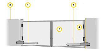 1 – Электропривод 2 – Ограждение 3 – Створка 4 – Петли