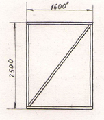 Причем ширина должна быть взята меньше на величину зазора между опорой и петлей (15мм) и второй створкой (5мм), отсюда общая ширина створки составит 1580 мм.