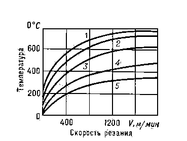 Рис. 3. Влияние свойств обрабатываемого металла на температуру резания