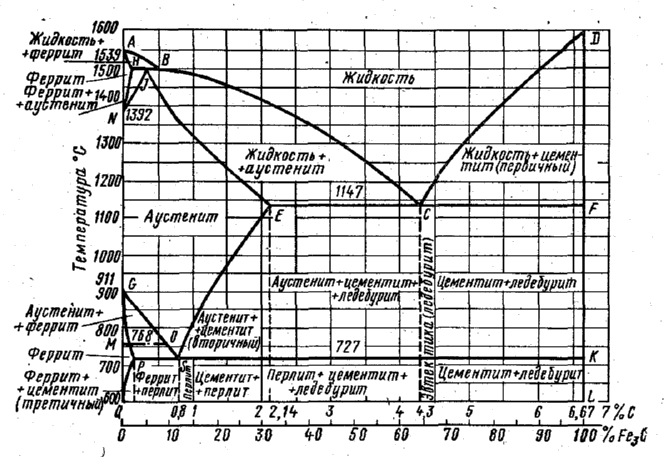 цементит FeэС — линия DFKL, обозначаемая в дальнейшем химической формулой или буквой Ц;