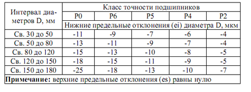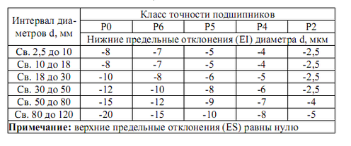 Таблица 5 – Предельные отклонения диаметра отверстия внутренних колец d радиальных подшипников по СТ СЭВ 774-77