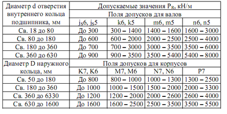 Таблица 8 – Допустимые интенсивности нагрузок на посадочных поверхностях валов и корпусов.