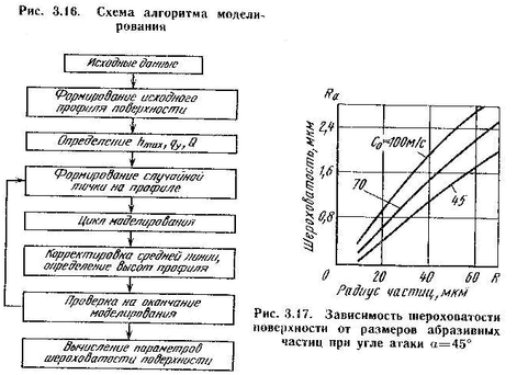Предлагаемая математическая модель формирования микрорельефа поверхностного слоя является универсальной и позволяет осуществлять имитационное моделирование для различных характеристик шероховатости исходной поверхности в широком диапазоне изменения технологических параметров струйной ГАО. На рис. 3.16 приведена схема алгоритма моделирования формирования микрорельефа поверхности при струйной ГАО.