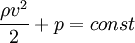 Константа в правой части обычно называется напором, или полным давлением, а также интегралом Бернулли. Размерность всех слагаемых — единица энергии, приходящейся на единицу объёма жидкости. Это соотношение, выведенное Даниилом Бернулли в 1738 г., было названо в его честь уравнением Бернулли. (Не путать с дифференциальным уравнением Бернулли.) Для горизонтальной трубы h = 0 и уравнение Бернулли принимает вид: .