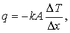 где q – тепловой поток, k – коэффициент теплопроводности, а A – площадь поперечного сечения. Это соотношение называется законом теплопроводности Фурье; знак «минус» в нем указывает на то, что теплота передается в направлении, обратном градиенту температуры. Из закона Фурье следует, что тепловой поток можно понизить, уменьшив одну из