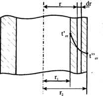 Рассмотрим стационарный процесс теплопроводности через цилиндрическую стенку длиной L, внутренним радиусом r1, наружным радиусом r2 , с