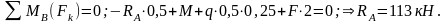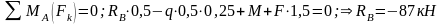 M(z3)= RВ z3 – qz3z30.5; M(0) = 0; M(0.5)= -45 кHм