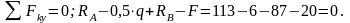 Q(z3) = -RВ + qz3; Q(0) = 87 кH; Q(0.5) = 93 кН