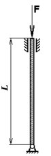 Дан стержень с опорами, закрепленными по указанной схеме, сжат силой F = 90 кН. Поперечное сечение – равносторонний треугольник. Длина стержня 1 = 0,85 м. Материал стержня - чугун. Модуль упругости Е = 1,3105 МПа, допускаемое напряжение [σ] = 130 МПа. Коэффициент закрепления опор = 0,7