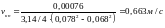 Перевіримо отримане значення на швидкість висхідного потоку. Рідина у свердловині рухається по двом перерізам. У верхньому інтервалі зовнішнім діаметром є внутрішній діаметр обсадної колони, тобто 78 мм. В нижньому інтервалі діаметр свердловини визначається діаметром коронки і коефіцієнтом кавернозності. Враховуючи категорію порід (десята), можна прогнозувати розробку стінок свердловини на 1–2 мм, тобто діаметр свердловини може бути 76–77 мм. Отже, за розрахунковий приймаємо переріз у верхньому інтервалі.