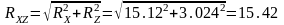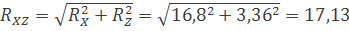 Складывание векторов сил RX и RZ даст силу RХZ: