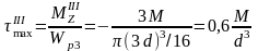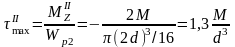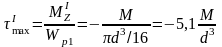 Вычисляем максимальные касательные напряжения в поперечных сечениях каждого участка.