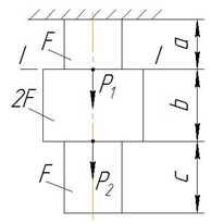Изменение длины бруса найдем, как алгебраическую сумму удлинений отдельных участков: