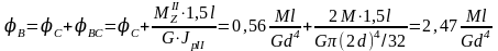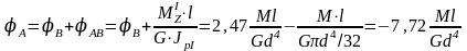 Угол поворота сечения бруса с постоянными (в пределах каждого участка) поперечным сечением и крутящим моментом определяется по формуле: