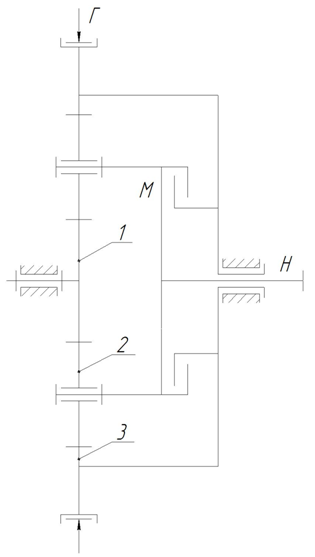 3. Рассмотрим кинематическую схему при выключенных тормозах Г и муфте М (рис. 3).